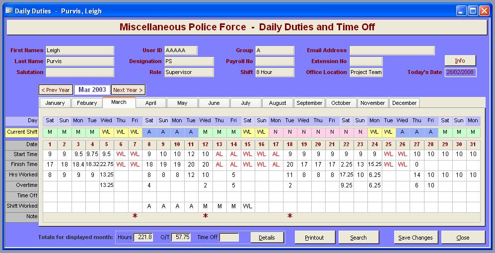 Speculative application developed with retired officer for managing shifts and time. (Never released).