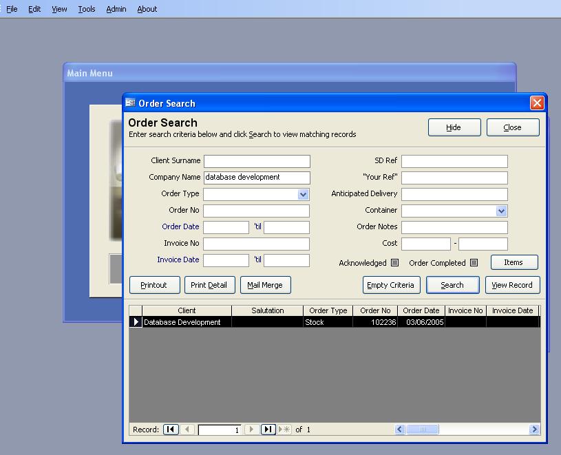 The following are screenshots of a few applications developed in Access.